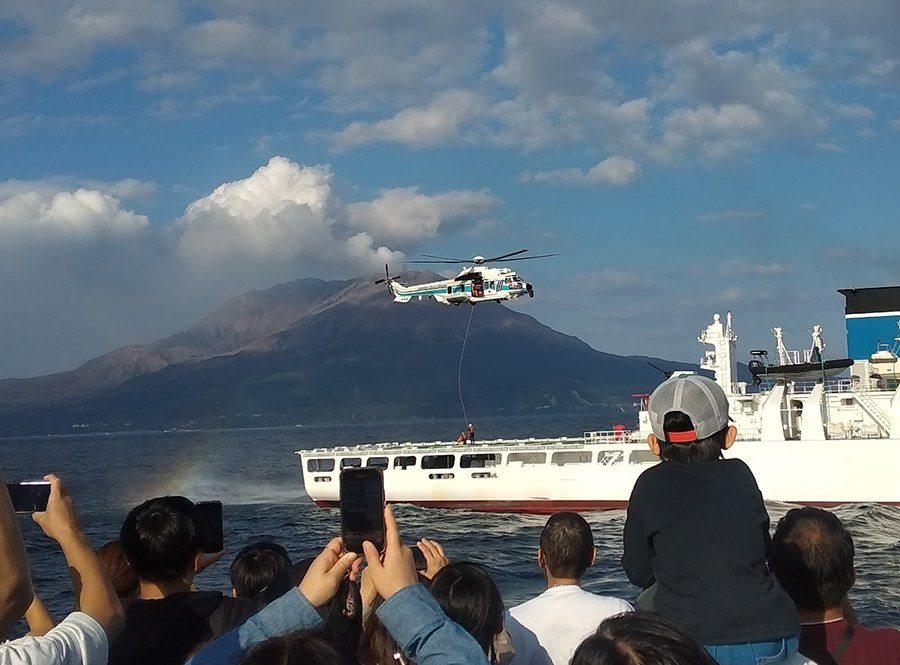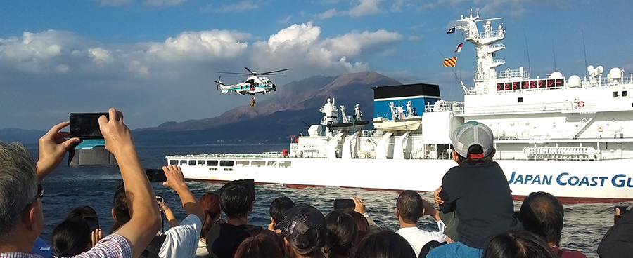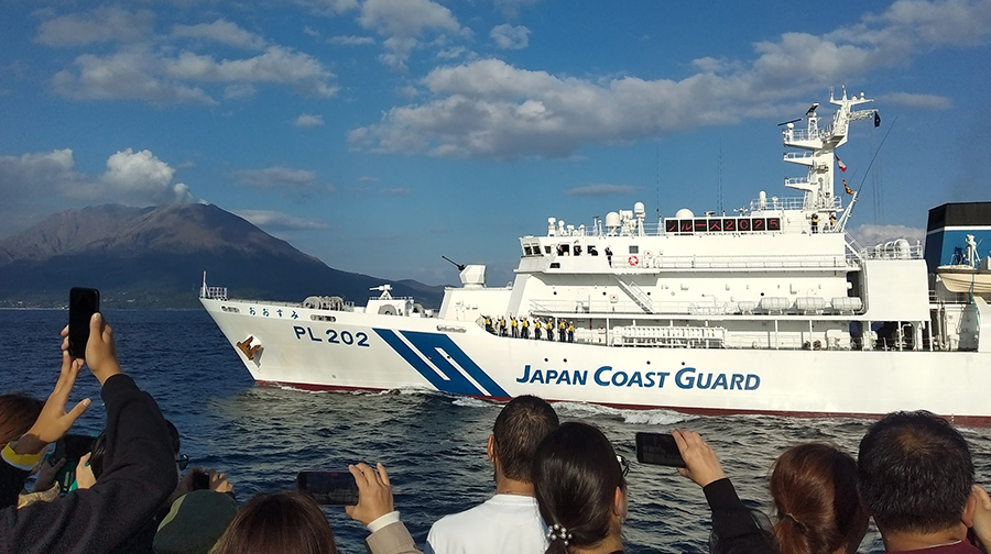 11月8日、第十管区海上保安本部の体験航海イベント「JCGクルーズ」が、鹿児島湾で開かれました。日ごろ目にすることが少ない海上保安庁の業務を知ってもらうのが主な目的です。参加者たちが乗り込んだのは全長140メートル、総トン数6000トンの大型巡視船「あさなぎ」です。イベントは午前、午後の部と2回に分けて行われ、1000人ほどが参加しました。