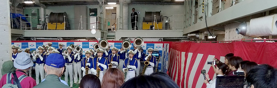 イベントでは、高校生のブラスバンドによる演奏が何曲も披露され、とても海上の雰囲気にあった、元気の良いものでした。