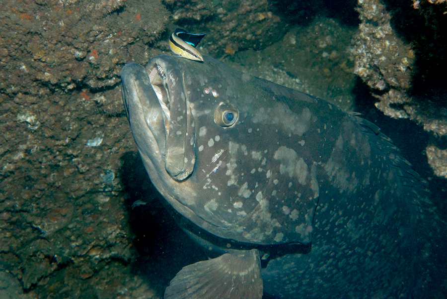 クリーニングをされるオオモンハタとそれを待つカサゴ。